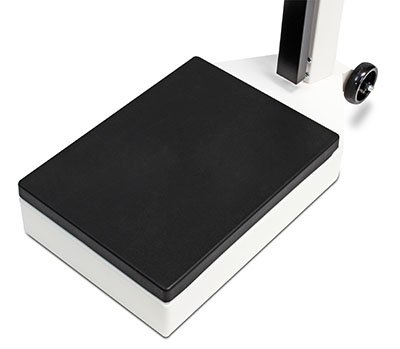The Apex Digital Clinical Scale w/mechanical height rod is an easy to read digital physician scale with an extra-wide, flat platform and inline mechanical height rods. The digital scale can be assembled in just a few seconds with no tools required. The Apex scale features eye-level LCD weight readouts, BMI calculation, dual wheels for transport, sturdy column construction, integral bubble level, 600-pound weight capacity, 2 RS232 serial ports and 1 micro USB-B port.
