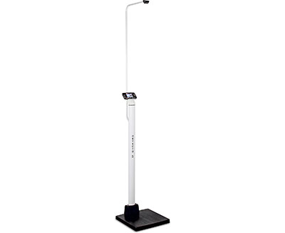 The Apex Digital Clinical Scale w/mechanical height rod is an easy to read digital physician scale with an extra-wide, flat platform and inline mechanical height rods. The digital scale can be assembled in just a few seconds with no tools required. The Apex scale features eye-level LCD weight readouts, BMI calculation, dual wheels for transport, sturdy column construction, integral bubble level, 600-pound weight capacity, 2 RS232 serial ports, 1 micro USB-B port and A/C adapter.