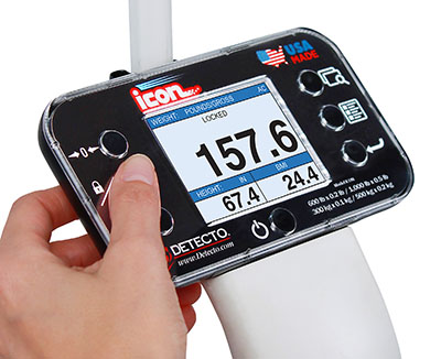 Interface for Detecto MedVue Indicator and Welch Allyn Scales. This connectivity solution allows capture and viewing of Detecto's exclusive 1LOOK weight, height, and BMI measurements and automated data transfer to EMRs.