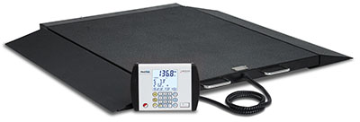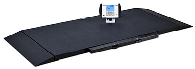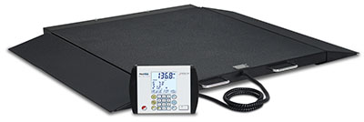 Detecto's APEX-RI series portable scales with remote indicators feature an extra-wide, flat platform measuring 17 in W x 17 in D x 2.75 in H, high 600 lb x 0.2 lb / 300 kg x 0.1 kg capacity, 0.75-inch-high clinical-blue LCD weight readouts, units locking into kilograms or pounds, BMI calculation, 6 ft/1.8 m cable from the scale base to indicator, integral carrying handle, textured platform surface, AC or 12 AA battery power, 1 RS232 serial port, 1 micro USB-B port, and HL7 IEEE 11073 compliance. They are ready to use right out of the box with no assembly needed. Wi-Fi/Bluetooth models are available (select -C models) with the protocol available upon request.