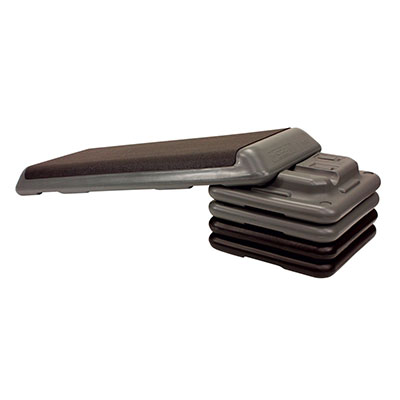 The platform features a cushioned surface, providing maximum traction and comfort. Freestyle risers allow for three platform positions: flat, horizontal, and vertical slant. Additional risers also available. Set comes with 4 risers (2 FreeStyle and 2 traditional) and 1 platform. FreeStyle risers are Gray and allow for 3 varying platform positions. Weight limit 300 lbs. 40" L x 14" W.