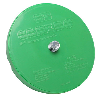 MVP balance system is a modular balance system with 4 different non-skid platforms available and 5 different color-coded instability balls to choose from. The platform stability can be altered creating various difficulty levels. The MVP balance system is perfect for balance, coordination, ankle and knee strengthening and rehabilitation, ankle range-of-motion and flexibility, core stability, improved posture, and proprioceptive training. Each board can be used either as a wobble board, if 1 ball is inserted into the center position, or rocker board, if 2 balls are inserted into opposing side positions. One ball can also be positioned off center to aid in ROM and stretching activities. The smaller instability balls offer the least instability and the larger instability balls offer the greatest instability. Larger platforms can limit the instability. Individual components available independently or available in kits with or without wall hang storage racks. Color-coded Instability balls also for use with CanDo Multi-Axial Positioning System. Included is one (1) green instability ball.