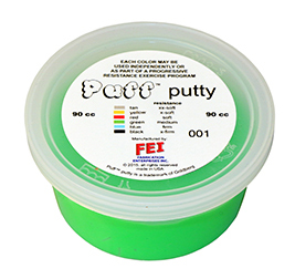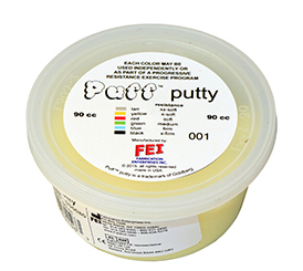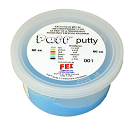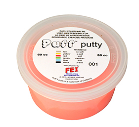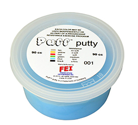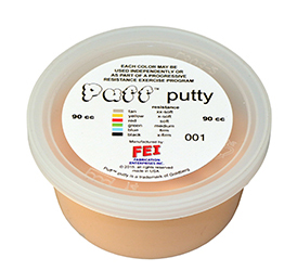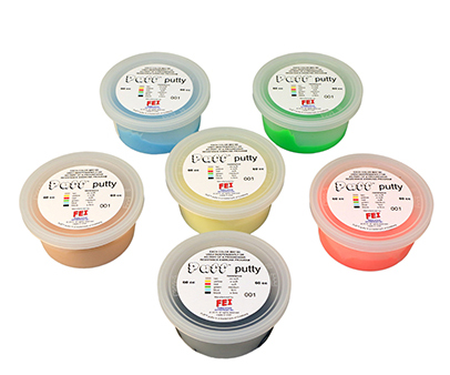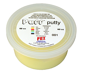 Puff LiTE has a light and airy feel vs. traditional CanDo Theraputty. Available in 6 resistance levels. Puff LiTE is available in the Preferred color sequence. Each color-coded putty has a different consistency ranging from xx-soft for strengthening the weakest grasp to xx-firm for developing a stronger grip. The putty material is gluten, casein and latex free.