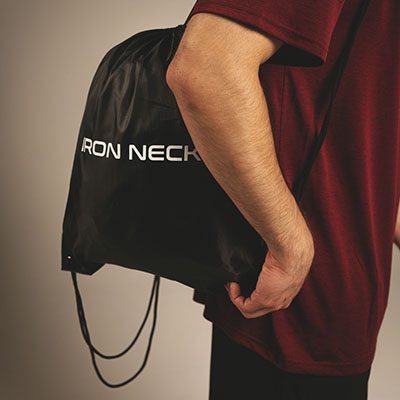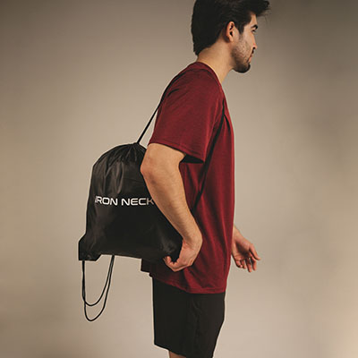 Iron Neck's Drawstring Bag fits every Iron Neck model and related accessories so you can easily workout at the home, gym, or wherever your training takes you. This drawstring bag can hold 1 Iron Neck along with resistance bands, anchors, and other training gear.