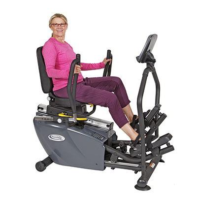 The PhysioStep LXT Recumbent Linear Step Cross Trainer provides an easy and effective low impact total body workout for a wide range of users. It combines a stable and stress-free recumbent sitting position, with the natural feeling of walking. The innovative Linear Stepping Motion is incredibly smooth and easy on your joints. It features a large, oversized and comfortable swivel seat that adjusts easily and fully rotates making this unit easily accessible for people with low mobility. The large 9" LCD display provides all the workout information in a clear and easy to read format. The low-profile walk-through design & ergo grip handles to work your arm and core muscles. The fully adjustable arms, seat, and seat back accommodate a wide range of users. Use it to exercise in a physical therapy setting or at home.