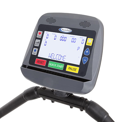 The PhysioMill Rehabilitation Treadmill has a heavy duty 4 HP Hi-Torque DC Servo motor specifically designed to offer a true zero start with .10 mph increments for patients up to 500 lbs. The extremely versatile PhysioMill Rehabilitation Treadmill has a reverse belt mode with 15 percent elevation allowing for downhill negative walking. Its forward motion speeds can be programmed to 12 mph while its backward speeds can be programmed to 3 mph. The large 21" x 63" walking belt allows the PhysioMill to be used in a variety of clinical settings such as Neurological, Orthopedic, Sports Medicine, Cardiac Rehab, Bariatrics and Pediatrics. This treadmill is built with high-quality materials, designed to last for years. It comes standard with long handrails, dual emergency stop buttons, hand held remote start/stop/pause, orthopedic walking belt and contact heart rate monitor.