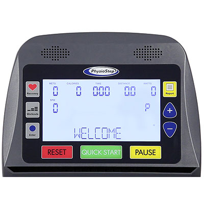 The PhysioStep PRO Recumbent Stepper Cross Trainer is combines a smooth linear stepping motion with the benefits of a total body workout in a comfortable seated position. Making the PhysioStep PRO one of the most versatile rehabilitation products on the market. Whether in a cardiac rehab or physical therapy setting, the open walk-through design and step lock feature makes entering the PhysioStep PRO safe and easy. The PhysioStep PRO's unique arm-to-leg motion allows users to exercise in a variety of low impact total body workouts. For focused rehabilitation, the user can isolate the operation of the unit to the left or right side. Those seeking a more intense total body workout strength training workout can use the PhysioStep Pro in a seated rowing or leg press motion. Simply by moving the PhysioStep PRO's seat and handlebar lengths, the degree of knee and hip flexion can be adjusted to fit specific patients' needs. The further back the patient sits, the less flexion in their step. Finding the correct exercising position is critical to patients' success, allowing them to perform rehabilitation exercises for a longer period. The PhysioStep PRO features an oversized 20" wide swivel seat, making patient transfers on and off the unit less strenuous. In addition, the swivel seat can easily slide off to accommodate patients in wheelchairs. The PhysioStep PRO has a large 9" color-coded console that displays all your important workout information in a clear and easy to read format. The low 6 WATT starting resistance and 16 levels of electronically controlled resistance make the PhysioStep PRO adaptable to all functional levels. Users can choose from 18 workout programs including target, variable and constant workload programs. Using the USB Report function workout data can be easily exported via USB for tracking patient goals in excel. The workout report records important totals, averages and peaks of workout feedbacks including WATTs and METs. Paired with the PhysioStep Stabilization Accessories Kit, patients can secure their legs, hands, and torso with optional bi-lateral leg stabilizers, grip gloves, and retractable seat belt. The PhysioStep PRO recumbent stepper cross trainer is perfect to fit your active aging, fitness, wellness and long-term care needs from rehabilitation to senior living.
