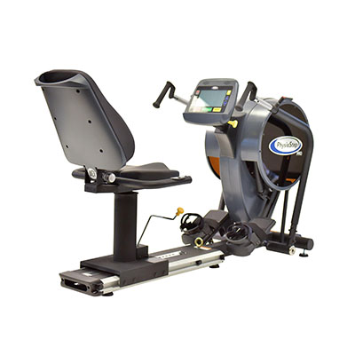 The PhysioCycle XT Recumbent Cycle and Upper Body Trainer provides a smooth and enjoyable total body workout, ideal for consumers use and durable enough for healthcare facilities. It has been designed so that the user can select from or combine exercise functions which include; Bi-Directional Upper Body Ergometer and Recumbent Cycle. The PhysioCyle XT has dependent upper and lower body, meaning both the arms and the legs will move during operation. It features an ergo-comfort seat and has a contact heart rate monitor. This device makes use of an electromagnetic resistance system and provide up to 8 resistance levels. Its max user weight is 300 lbs.