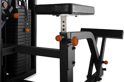 The Multi-Bicep/Trice Fitness Station is a fantastic addition to any gym, facility or home workout studio. It's been designed to place exercise emphasis on the biceps, triceps and forearms. Coming standard with a 150 lb. weight stack, which can be upgraded in 50 lb. increments up to 300 lbs., this unit features 1" shafts and ABEC rated ball bearings at the exercise pivots to ensure smooth movement. Perfect for busy multi-user environments, this compact unit has a small footprint of only 44" x 54". Filled with tons of features that raise this unit from ordinary to extraordinary, this station offers cast steel weight plates, five seat height positions, a unique pushback exercise that works the entire tricep and easy access to the weight stack. It also offers 2" x 4" flat oval tubing, ¼" dia. 4000 lb. cable and 4.5" pulleys for rugged durability. Includes steel shrouds that are powder and clear coated, providing a mar-resistant lustrous finish. The station has non-absorbent closed cell foam grips finished with aluminum grip caps to prevent wear while looking terrific. Device includes an easy-to-understand and follow exercise placard. Foam contoured seat and back pads with sewn vinyl covers offer comfort and lumbar support. The rich, platinum color will compliment any decor and fit into every environment.