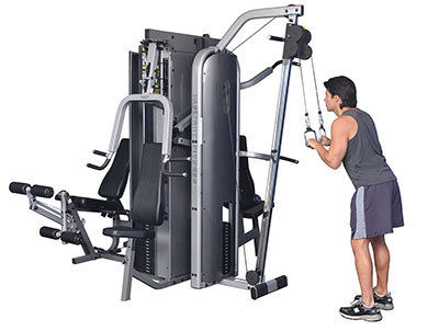 Versatility and multi-functionality are the keywords when discussing the Liberator Training System from Inflight Fitness. Rugged and durable, the Liberator is a fantastic addition to any gym, facility or other commercial facility. Five stacks and five stations make this the ultimate system for a multi-user environment. So unique, it not only allows users to go from one cable-assisted exercise to the next by just changing stations, the Liberator can have five users working on it simultaneously. The five stations and the adjustable pulley system allows users to target multiple muscle groups. The totality of the unit provides for a wide variety of arm, leg, upper body, lower body and core exercises. To just scratch the surface, this would include lat pulls and shoulder presses on one station, leg extensions and curls at another, chest presses and ab crunches at a third, bicep curls and seated rows at the fourth and chest, lower back and hip work on the crossover station. The crossover features 17 different height adjustments, a 2:1 cable ratio and includes a chin-up bar and rock-climbing grips for the generously sized, 84"" monkey bar crossbeam. The device comes standard with 3 (three) 200 lb. weight stacks and two stacks of 150 lbs. Each is eligible to be upgraded in 50 lb. increments up to 300 lbs. The seats are padded with premium upholstery featuring sewn vinyl covers for ultimate durability. The contoured seat and back pads offer lumbar support and maximum comfort. The easy to use ratchet adjustment system lets users position the seats for height and comfort. This unit also features commercial rated 1"" shafts and 1"" pillow block bearings on the press arm to ensure smooth movement. Perfect for busy multi-user environments, this unit has a footprint of 207"" x 86"". It also offers cast steel weight plates, ?"" dia. 4000 lb. military-spec cable and 4.5"" and 6"" pulleys for rugged durability and quiet operation. Includes full steel shrouds that are powder and clear coated, providing a mar-resistant lustrous finish. At less than 8' tall, this unit will easily fit in nearly every facility. Device includes multiple easy-to-follow exercise placards that demonstrate machine set-up, proper form and target muscle groups. All hand grips are made of non-absorbent, UV resistant closed cell foam and are finished with aluminum grip caps to prevent wear while looking terrific. The rich, platinum color will compliment any decor and fit into every environment.