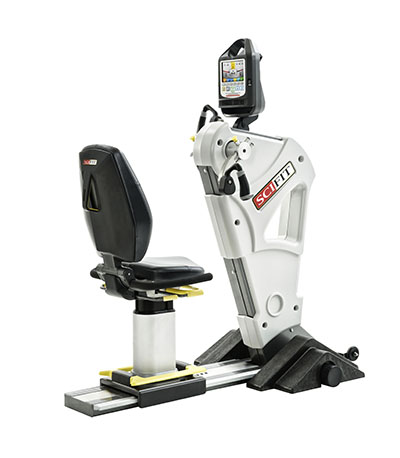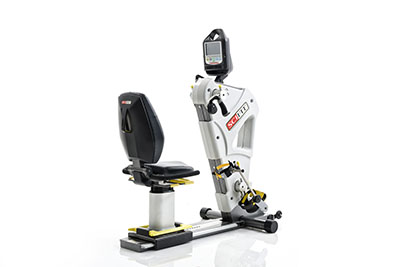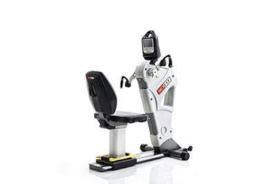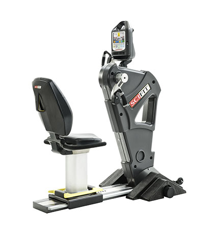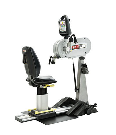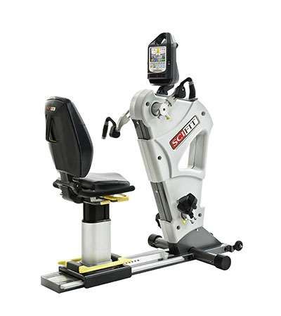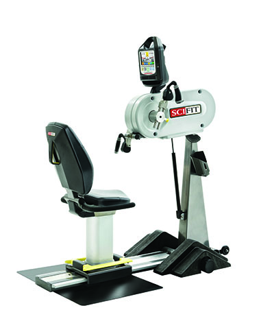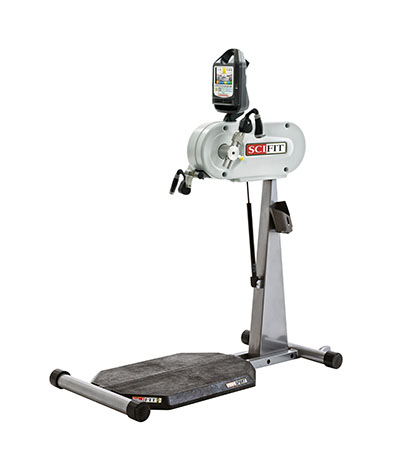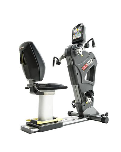 The SciFit PRO2 Total Body Exerciser is the ideal total body rehabilitation tool because users can exercise both their upper and lower body. The dependent motion allows stronger extremities to assist weaker ones. Both the upper and lower cranks are adjustable with 3 length settings each. The cranks can move forwards as well as backwards. The lower pedals have adjustable straps for easy access. The premium seat can also recline and swivel for easier usability. The user weight capacity for the premium seat is 450 lbs.