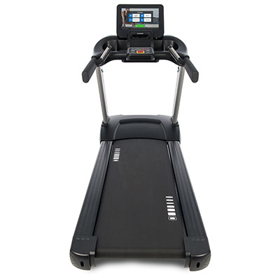 The CT850ENT Treadmill combines the solid CT850 platform with touchscreen technology on an oversized 15.6" entertainment display. TV, web browsing, and music streaming are all made possible within a user interface that is easy to use and adaptable to nearly any facility. Preset programs include a wide variety of popular workouts for the average user while fitness tests, heart rate programs and a custom program are available for more serious users. Direct control buttons allow the ability to quickly program a specific incline or speed with just a few key strikes. User comfort was considered with the addition of the Turbo cooling fan, five convenient accessory trays and ergonomically positioned Heart Rate Grips. The CT850ENT also accommodates extended handrails for clients that require extra stability (sold separately). The cool running, brushless 4.0 horse power AC drive motor adds to the reliability of the treadmill while providing the torque and smooth continuous power required by the unique needs of its users. 6 cushions evenly distributed throughout the unit and a roomy 22" x 60" workout area ensure a comfortable experience. The heavy-gauge high-strength with durable powder-coat paint and aluminum console frame ensures commercial-grade longevity.