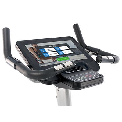 Designed on the solid CU800 platform, the CU800ENT incorporates touchscreen technology on a large 15.6" entertainment display. Users can screen mirror from their phone so they can watch whatever they want. Pre-loaded apps also give users the ability to stay entertained with popular streaming, news, and social media content. And if that isn't enough, the facility can enable the ability to watch cable TV through an HDMI and cable box connection. From the 40 levels of resistance and numerous program options to the extra-smooth ride and heavy-duty feel, the CU800ENT has everything you could want in an upright bike. The CU800ENT features a modern 15.6" touchscreen display and electronics package that allows your clients to screen mirror from their phone, watch cable TV, or stream shows, news, and social media content. The USB charging port, cooling fan, and user-intuitive design appeal to a wide range of users. Preset programs provide a variety of popular workouts for the average user while heart rate control and custom programs are available for more serious users.