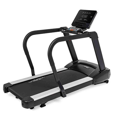 The CT800 is a stout and durable treadmill - it weighs in at 350 lbs. - that is ideal for the rigors and hard use a multi-user environment dishes out. The included medical handrails provide security and stability for users in medical and rehabilitative settings. The entire length of these handrails is neoprene dipped for a firm non-slip grip. With premium features that will appeal to walkers and serious runners, the CT800 is designed for maximum durability with a non-folding frame design, a 4.0HP motor, a waxed deck system and a heavy-duty steel frame. Offering an extra-large 60"L x 22"W workout surface, this unit has an oversized 9" bright blue backlit LCD screen on the console that gives users all the information they need and want at their fingertips. The speed can be adjusted from 0.5 to 12 mph and the incline can be raised up to 15%. Nine factory preset programs are offered, plus one user defined program for a customized workout and one manual program. Preset programs include Hill, Fat burn, Cardio, 5K run, Interval, Fitness Test and Heart Rate Programs 1 and 2. The CT800 also includes four Military readiness tests. If a program isn't what you want, this unit also has a Quick Start option. Contact and wireless heart rate monitoring options are also included to make workouts more effective. The CT800 has a 450 lb. weight capacity and comes with a fully illustrated assembly guide and instruction manual. Assembly is required. The console displays Pace, Calories burned, Time (elapsed or countdown), Distance traveled and Pulse. It is also a tablet friendly reading rack. Features a convenient water bottle holder and cargo compartment for keys or a phone. The console also offers a cooling fan to help keep users comfortable during their workout. Features a magnetic safety tether cord that will stop tread-belt movement immediately should the user fall or move too far back on the tread-belt. It is recommended that underneath the treadmill be vacuumed on a monthly basis to prevent an excess build-up of dirt.