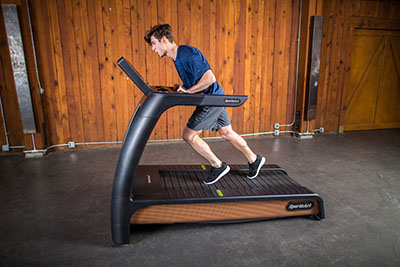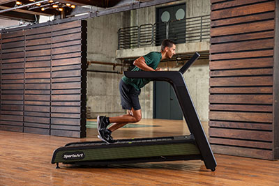 The N685 non-motorized, completely self-powered treadmill from SportsArt boasts a sleek design that combines supremely low friction and flat-slat belt to create an approachable unit that feels remarkably natural and comfortable. Utilizing both mechanical and electrical braking systems the N685 allows walking, jogging, running, sprinting or sled pushing features that cater to a broad spectrum of users, from deconditioned to elite athletes.