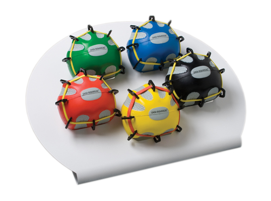 CanDo Digi-Extend n' Squeeze Hand Exerciser combines best features of Digi-Extend and Digi-Squeeze. It helps to develop isolated finger strength, flexibility and coordination. Provides complete reciprocal exercise program (flexion and extension). Ergonomic ball-shape positions fingers and hand for ideal pressure distribution. Each exercise comes with exercise pamphlet. CanDo Digi-Extend n' Squeeze available in 3 sizes. Each size available in 5 color-coded resistance levels for flexion. Each unit is packaged standard with latex free extension bands covering 4 color-coded levels from the lightest to heaviest extension requirements.