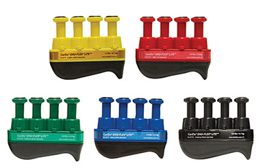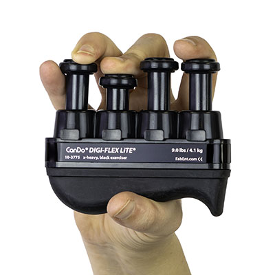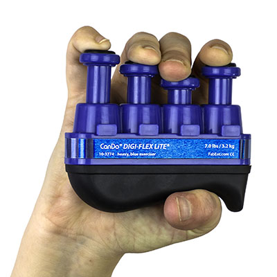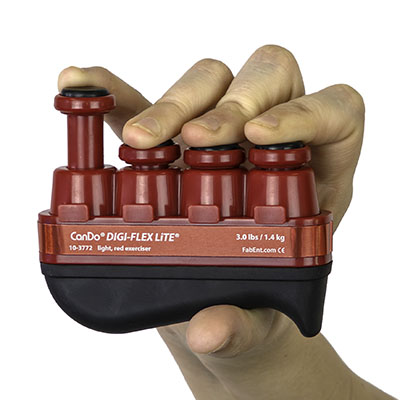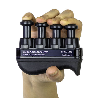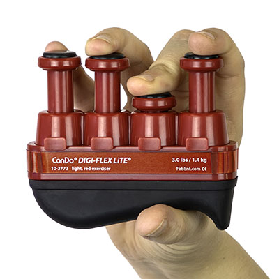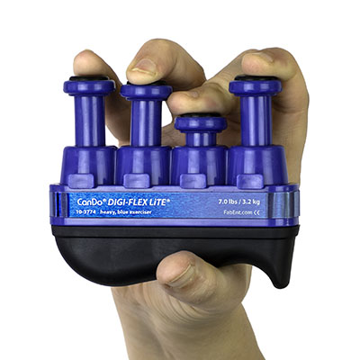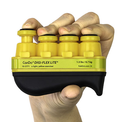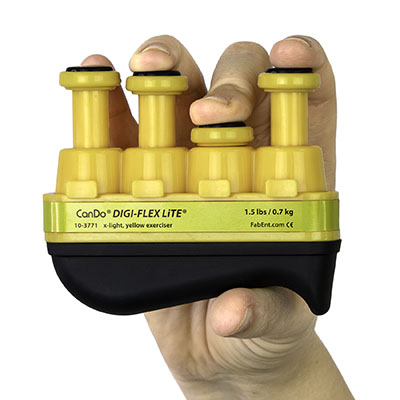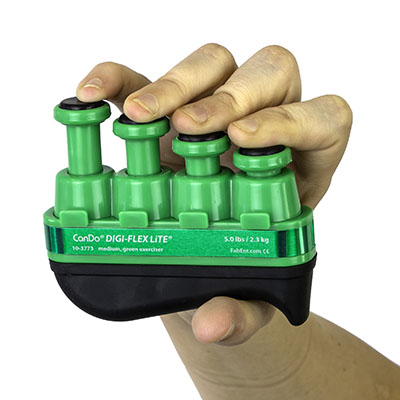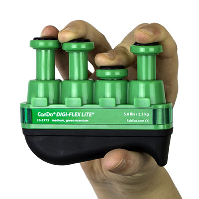 The CanDo Digi-Flex LITE develops isolated finger strength, flexibility and coordination as it builds hand and forearm strength. Each finger button can individually lock. Each button has a single spring that is covered by plastic sheath. Use each button independently to exercise fingers or compress the entire unit for complete hand and forearm strengthening. Progressive color-coded resistance gives patient positive feedback.