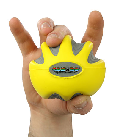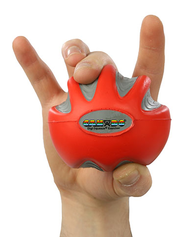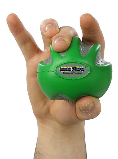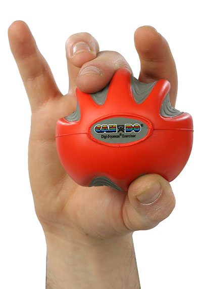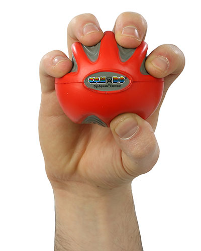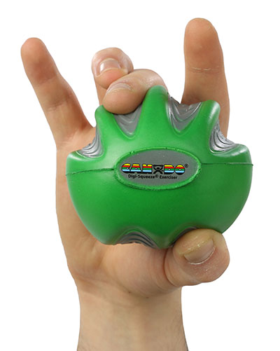 CanDo Digi-Squeeze hand exerciser is a hand-held foam exercise ball for squeezing that helps develops isolated finger strength, flexibility, and coordination for rehabilitation of carpel tunnel, arthritis, stroke, fractures, tendon injury, nerve lacerations, tennis elbow and more. The ball comes with exercise pamphlet and is available in three different sizes for small, medium, and large hands, and 5 different resistances. Each ball has finger and thumb positioning indents and markings for both left and right handed use.