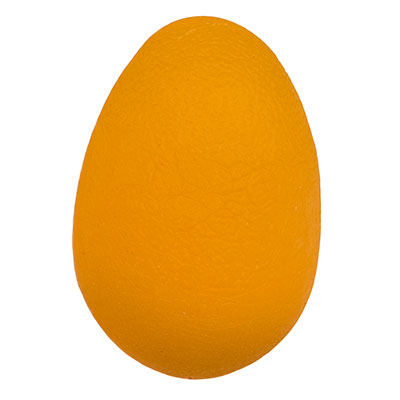 The Eggsercizer is an egg-cellent hand therapy exerciser that works on increasing grip strength. Its unique shape is designed to fit the contours of your hand to promote recovery from injury or surgery. Use the Eggsercizer for a variety of exercises for the fingers, hand, wrist and forearm, and also as a stress reliever. Your patients can improve grip strength, hand endurance, dexterity, muscle tone, and fine and gross motor skills with repeated use. The Eggsercizer is made of a non-allergenic polymer that will not crack, leak or melt. Choose from five color-coded Eggsercizers, each with varying resistance levels for progressive rehabilitation. This Eggsercizer is orange in color and has a x-soft resistance for an easier hand therapy session before you move up in resistance.