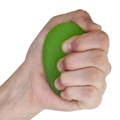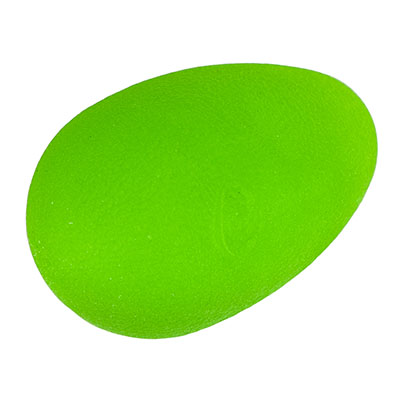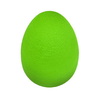 The Eggsercizer is an egg-cellent hand therapy exerciser that works on increasing grip strength. Its unique shape is designed to fit the contours of your hand to promote recovery from injury or surgery. Use the Eggsercizer for a variety of exercises for the fingers, hand, wrist and forearm, and also as a stress reliever. Your patients can improve grip strength, hand endurance, dexterity, muscle tone, and fine and gross motor skills with repeated use. The Eggsercizer is made of a non-allergenic polymer that will not crack, leak or melt. Choose from five color-coded Eggsercizers, each with varying resistance levels for progressive rehabilitation. This Eggsercizer is green in color and has a soft resistance for soft hand therapy experience before you move up in resistance.