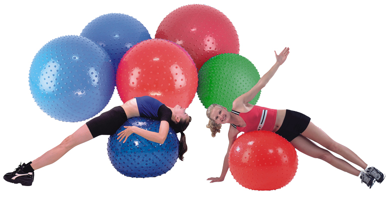 The CanDo inflatable exercise sensi-ball has a specially textured "nubby" surface that adds tactile and visual elements to ball therapy. The bumps also massage the user. Balls are used to improve balance, coordination, flexibility, and strength, and even just for fun. Balls can support up to 300 pounds. Available in various color-coded sizes.