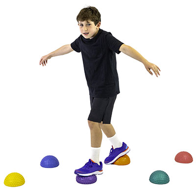 The CanDo Balance Stone is the inflatable solution for improving balance, strengthening the lower back, aiding posture and reducing back pain, stress, restlessness and anxiety. Shaped like an exercise ball sliced in half, the Balance Stone is dual sided. The bottom side is flat and smooth. The upper side is textured with nubs for tactile feedback and stimulation. Standing, sitting or lying on the stone requires active participation and constant adjustments from the user to find balance. Not just for sitting and balance training, enhance everyday workouts by incorporating the stone into strengthening and toning exercise routines. Nearly every exercise routine can have a new twist and enhanced difficulty. Ideal for sciatica and improving range-of-motion. Laying on your back also provides a terrific massage as the nubs press in and relieve stress and pressure points. The stone arrives partially inflated so users can right on it as soon as it's out of the box. This is a case of 6 CanDo Balance Stones in Blue with a 14" diameter. Please note, Balance Stones do not include an air pump. In addition to air, the Balance Stone can be filled with either water or sand for added stability. Makes an excellent vestibular trainer when used with the curved side down. Combining dynamic seating and static positioning, the degree of difficulty in trying to sit on the stone can be varied by inflating or deflating. The Balance Stone is Latex-free, so it's safe for everyone. Easy to clean needing only a damp cloth and mild soap.