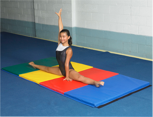 CanDo accordion fold mats are durable enough for the school, gym and clinic setting. The accordion fold mats fold every 2 feet to minimize storage space when not in use. Velcro ends allow mats to safely connect to other mat to "expand" and form a larger mat surface. The 2" thick poly-urethane foam mats are covered with 18 oz. tough fire-retardant phthalate-free PVC coated vinyl; cover is sewn around foam. The vinyl coated nylon cover is strong, mildew resistant, anti-bacterial and wipes clean with a damp cloth. The mat is made with square side walls and is reinforced at all stress points for added durability. 2" thick Poly-urethane mats for a softer feel, used when cushioning is most important. Rainbow colors: green, yellow, red and royal blue.