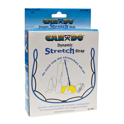 The CanDo elastic stretch strap is the strap that stretches as you stretch. The CanDo Dynamic Stretch Strap is made with elastic pockets that allow the user to ease into a stretch. CanDo Dynamic Stretch Strap permits dynamic rather than static stretching. The strap is designed for facilitated stretching, an active form of stretching that uses isometric contractions to achieve greater flexibility gains than from static stretching. Reduces the need for a stretching partner.