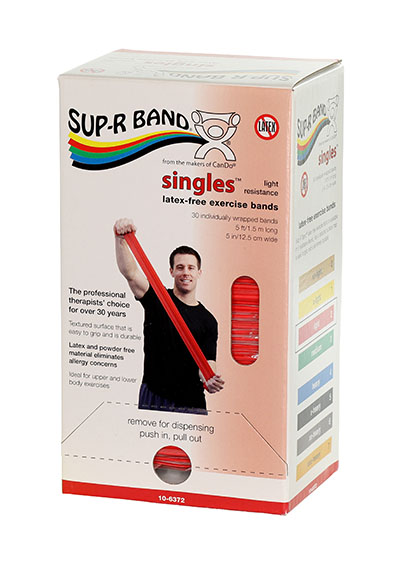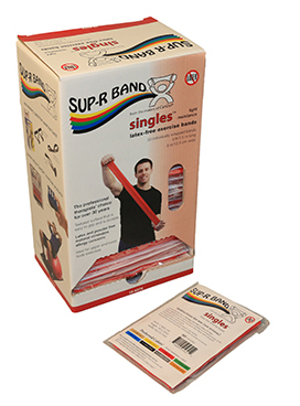 Sup-R band, latex-free, 5-foot Singles, 30 piece dispenser, red: