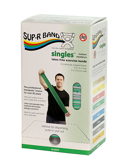 Sup-R band, latex-free, 5-foot Singles, 30 piece dispenser, green: