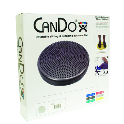 CanDo inflatable vestibular disc mimics the movement and shape of an Inflatable ball when used on any seat. Use it on the floor as a standing disc for balance training, proprioception and strengthening of the lower extremities. Each disc has one nubby side for tactile feedback and stimulation, and one flat side. Disc inflates and deflates with standard pump. Vary the inflation level to change the level of vestibular challenge. Available in 5 colors for aesthetic purposes and two sizes: 14 inch (35 cm) and 24 inch (60 cm).