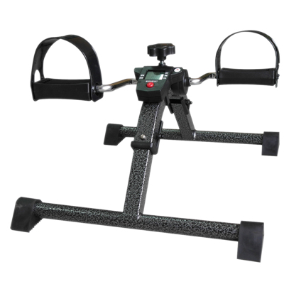 Pedal exercisers are inexpensive and portable exercisers for both the upper and lower body. They can be used on the floor for foot pedaling, or on the tabletop for hand pedaling. These pedal exercisers have wide leg spread and non-marring feet keep exerciser stable even when patient has little muscle control. Wrap around adjustable foot straps for use with or without shoes. Adjustable tension allows for easy changes in pedaling difficulty level. Exercisers are available in a variety of styles with and without digital read-out.