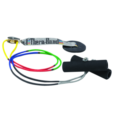 CanDo heavy duty over-the-door shoulder pulley exercisers are used to increase shoulder range of motion. CanDo shoulder pulleys are available in a variety of styles with double door bracket, door disc anchors, door clamps and door jamb nub anchors. Pulley exercisers are available with color-coded Visualizer rope and motion limiter and standard rope. Visualizer ropes allow user to achieve specific pre-defined levels of ROM. Each pulley has a swivel hook for seamless pulley action and large foam handles for comfortable grip. Extra-long rope can be used in the standing or seated position. Each exerciser comes standard with instructions pamphlet and retail packaging.