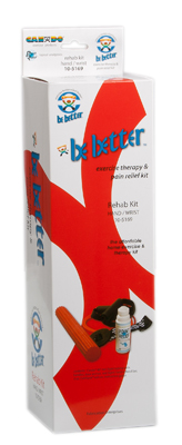 Be Better hand and wrist rehabilitation kit is perfect for home exercise programs and individual patient use. Be Better kit combines CanDo exercise products to increase strength, and ColdSpot pain relieving roll-on to increase comfort, along with an illustrated instruction pamphlet. Kit includes red light strength 4-foot CanDo tubing with handles exerciser. CanDo high quality latex resistive exercise tubing has been used in clinics for rehabilitation, conditioning and training since 1984. It has become a well known staple of many physical therapy programs. CanDo exercise tubing is an economic solution for upper and lower body exercise. Lightweight, compact and portable. Durable. Effective when used alone, or with handles and anchors. CanDo low powder exercise tubing is made of natural rubber latex, which may cause allergic reactions. For those with latex sensitivities, there are latex-free alternative offerings of CanDo exercise tubing. Kit also includes door anchor accessory to facilitate tubing exercises described in the pamphlet. Kit also includes red light strength Twist-n-Bend exercise bar. Kit also includes 3 ounce roll-on bottle of ColdSpot topical analgesic lotion. Point Relief ColdSpot topical analgesic roll-on offers fast-acting, soothing, temporary relief of minor aches and pains of muscles and joints associated with simple backache, arthritis, bruises, strains and sprains. Water-based formula minimizes grease and residue. All natural ingredients including menthol, MSM, ilex, and arnica. Has refreshing Peppermint scent.