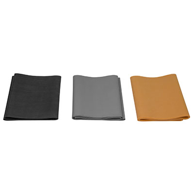 CanDo Low Powder Exercise Band Pep Pack - Challenging with black, silver and gold band: