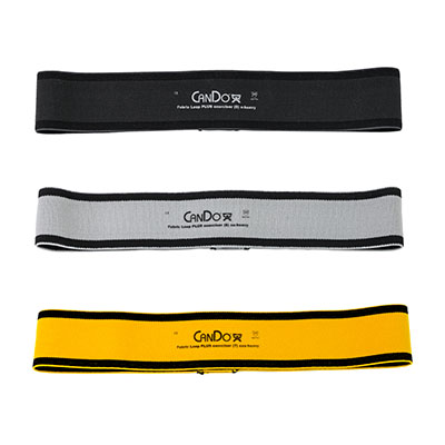 The CanDo Fabric Loop Plus is a convenient, pre-cut fabric loop that is perfect for your resistance training needs. The pre-cut design means that it is instantly ready-to-use, eliminating the need for time-consuming preparation. No need to cut and tie before exercise, allowing practitioners and patients to focus on what matters most - effective therapy and rehabilitation. Crafted from high-quality woven fabric, the CanDo Fabric Loop Plus delivers exceptional durability while providing a gentle, comfortable feel against the skin. Its latex-free construction ensures a safe exercise experience for all users, maintaining optimal elasticity without compromising performance. The specialized non-slip texture keeps the loop securely in place during movement, preventing unwanted rolling or bunching that could interfere with proper form. Available in three lengths, the CanDo Fabric Loop Plus adapts to various therapeutic needs. The 8-inch loop is perfect for upper body exercises and specialized rotator cuff therapy. The 12-inch loop is ideal for lower body workouts and hip stabilization training. The 18-inch loop is optimized for full-body core exercises and postural training. Each size comes in 8 color-coded resistance levels, ranging from Tan through Gold, offering precise progression in your rehabilitation program. Purchase individually or in convenient 3-piece sets to create a comprehensive therapy solution. Transform your rehabilitation practice with the CanDo Fabric Loop Plus - where professional-grade quality meets unmatched convenience.