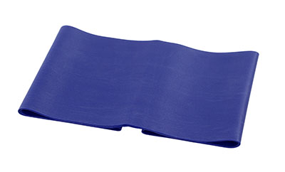 CanDo resistive band exerciser is packaged in a polybag. Simply remove exercise band from polybag and it is ready to use. CanDo high quality latex resistive exercise band has been used in clinics for rehabilitation, conditioning and training since 1987. It has become a well known staple of many physical therapy programs. CanDo exercise band is an economic solution for upper and lower body exercise. Lightweight, compact and portable. Durable. Effective when used alone, or with handles and anchors. Color-coded according to the exercise band's resistance. CanDo is licensed to use the Thera-Band color sequence so resistance level is easily identified. Available in 8 levels of resistance for progressive exercise. Levels range in order of resistance from least to greatest resistance: tan, yellow, red, green, blue, black, silver, gold. Each band is 5 inches wide and 5 feet long. CanDo low powder exercise band is made of natural rubber latex, which may cause allergic reactions. For those with latex sensitivities, there are latex-free alternative offerings of CanDo exercise band. The blue band is Heavy in resistance and comes in a 30 piece dispenser.