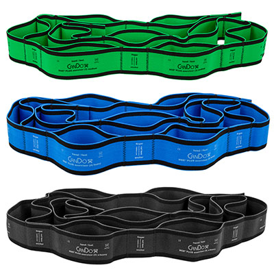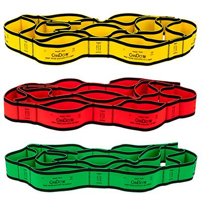 The CanDo Multi-Grip Exerciser is designed to provide unlimited exercise options to users who want to do various high impact performance exercises. Each exerciser contains both large and small loops that are easy to grip. Use the small loops as an anchor or for finger exercises. Use the larger loops around the hands and feet to perform high impact upper and lower body exercises. Easily change resistance by moving 1 loop up or down the exerciser, or using a different resistance progressively exercise with 8 different color-coded resistance levels. The CanDo Multi-Grip Exerciser is made of an unscented cloth that can be washed and dried. It does not contain latex or a powder coating. This 5-piece set comes with 1 of each of the following: yellow (x-soft), red(soft), green(medium), blue(firm), and black(x-firm). Each exerciser measures six feet in length and has 9 large loops.