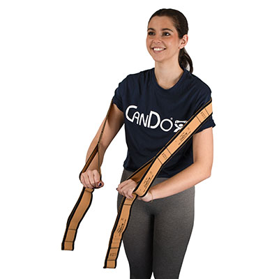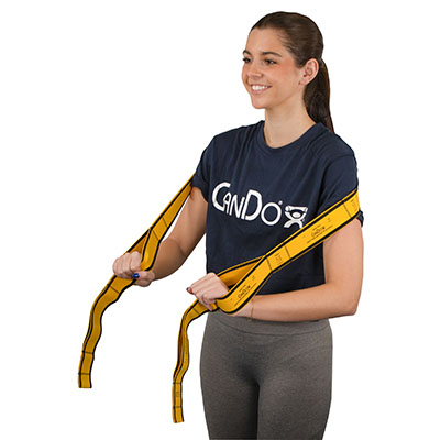 The CanDo Multi-Grip Exerciser is designed to provide unlimited exercise options to users who want to do various high impact performance exercises. Each exerciser contains both large and small loops that are easy to grip. Use the small loops as an anchor or for finger exercises. Use the larger loops around the hands and feet to perform high impact upper and lower body exercises. Easily change resistance by moving 1 loop up or down the exerciser, or using a different resistance progressively exercise with 8 different color-coded resistance levels. The CanDo Multi-Grip Exerciser is made of an unscented cloth that can be washed and dried. It does not contain latex or a powder coating. This exerciser measures six feet in length and has 9 large loops. It is XXX-Heavy in resistance and is gold in color.