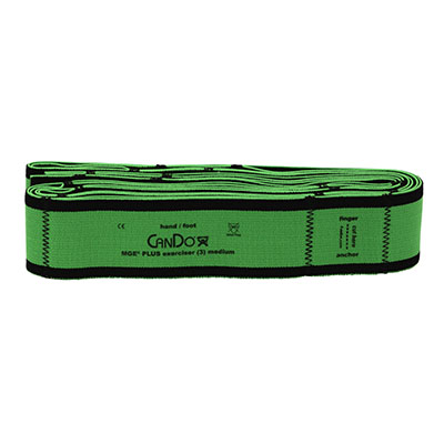 The CanDo Multi-Grip Exerciser is designed to provide unlimited exercise options to users who want to do various high impact performance exercises. Each exerciser contains both large and small loops that are easy to grip. Use the small loops as an anchor or for finger exercises. Use the larger loops around the hands and feet to perform high impact upper and lower body exercises. Easily change resistance by moving 1 loop up or down the exerciser, or using a different resistance progressively exercise with 8 different color-coded resistance levels. The CanDo Multi-Grip Exerciser is made of an unscented cloth that can be washed and dried. It does not contain latex or a powder coating. This thirty-yard roll contains 15 exercisers and has 135 large loops total. It is Medium in resistance and is green in color.