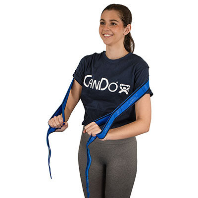 The CanDo Multi-Grip Exerciser is designed to provide unlimited exercise options to users who want to do various high impact performance exercises. Each exerciser contains both large and small loops that are easy to grip. Use the small loops as an anchor or for finger exercises. Use the larger loops around the hands and feet to perform high impact upper and lower body exercises. Easily change resistance by moving 1 loop up or down the exerciser, or using a different resistance progressively exercise with 8 different color-coded resistance levels. The CanDo Multi-Grip Exerciser is made of an unscented cloth that can be washed and dried. It does not contain latex or a powder coating. This exerciser measures six feet in length and has 9 large loops. It is Heavy in resistance and is blue in color.