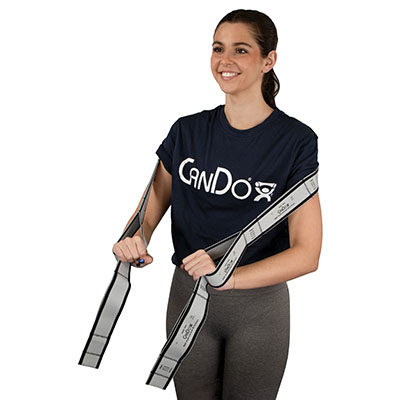 The CanDo Multi-Grip Exerciser is designed to provide unlimited exercise options to users who want to do various high impact performance exercises. Each exerciser contains both large and small loops that are easy to grip. Use the small loops as an anchor or for finger exercises. Use the larger loops around the hands and feet to perform high impact upper and lower body exercises. Easily change resistance by moving 1 loop up or down the exerciser, or using a different resistance progressively exercise with 8 different color-coded resistance levels. The CanDo Multi-Grip Exerciser is made of an unscented cloth that can be washed and dried. It does not contain latex or a powder coating. This exerciser measures six feet in length and has 9 large loops. It is XX-Heavy in resistance and is silver in color.