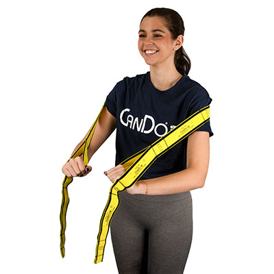 The CanDo Multi-Grip Exerciser is designed to provide unlimited exercise options to users who want to do various high impact performance exercises. Each exerciser contains both large and small loops that are easy to grip. Use the small loops as an anchor or for finger exercises. Use the larger loops around the hands and feet to perform high impact upper and lower body exercises. Easily change resistance by moving 1 loop up or down the exerciser, or using a different resistance progressively exercise with 8 different color-coded resistance levels. The CanDo Multi-Grip Exerciser is made of an unscented cloth that can be washed and dried. It does not contain latex or a powder coating. This exerciser measures six feet in length and has 9 large loops. It is X-Light in resistance and is yellow in color.