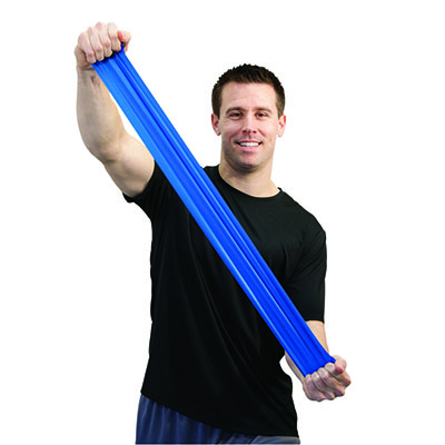 Sup-R Band Latex-Free Exerciser Bands are perfect for rehabilitation, fitness, physical therapy and athletic training. Additionally, they are great for anyone using them for stretching, muscle toning, improving balance and conditioning all major muscle groups. They come as pre-packaged 5'singles. The Sup-R Exercise Band is the premium exercise band solution, being Latex-free while still providing all the functionality and benefits of a band with Latex. So versatile, these bands are super for upper and lower body exercises that are simple, easy to do and can be performed anywhere. Lightweight, compact and portable, the TPE Latex-free formula mimics the stretch, contraction and strength characteristics of a Latex band. The high quality and superior characteristics of these bands are why they are used in physical therapy and athletic training by clinics, fitness centers and individuals nationwide. Perfect for home and personal use, each package contains 1 (one) 5-foot individual Blue (Heavy) Band. Exercise bands are effective when used alone or with handles and anchors. Made with Thermoplastic Elastomer, which gives the bands the same tear and burst strength as a Latex-band. They are a well-known staple of most physical therapy offices, clinics and gyms because they are durable, powderless and textured for easy gripping. Individual strips can be reused repeatedly. Bands are available in 8 levels of resistance for progressive exercise. Levels range in order of strength from least to greatest resistance: tan, yellow, red, green, blue, black, silver, gold.