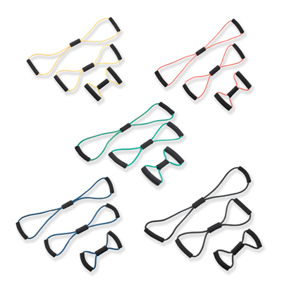 CanDo Tubing BowTie Exerciser - 30" - 5-piece set (1 each: yellow, red, green, blue, black):
