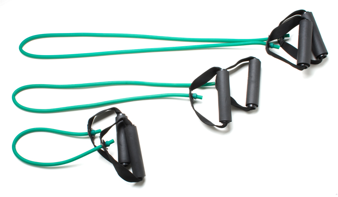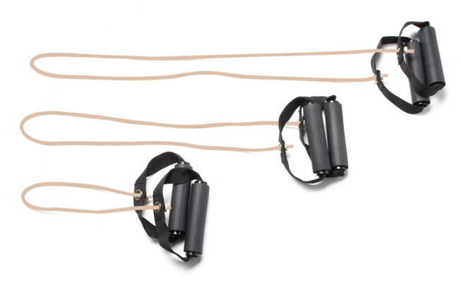 Lightweight, compact and portable, the tubing exerciser helps perform strengthening and conditioning workouts on-the-go, even in your hotel room! Two permanent foam covered rigid handles give the exerciser comfort and a firm grasp. CanDo is licensed to use the Thera-Band color sequence so resistance level is easily identified. The tubing with handles exerciser is available in 7 levels of resistance for progressive exercise and 3 lengths to accommodate different needs. Levels range in order of strength from least to greatest resistance: tan, yellow, red, green, blue, black, silver. Length represents length of tubing from end to end when unit is laid flat and is taut. CanDo low powder exercise tubing is made of natural rubber latex, which may cause allergic reactions.