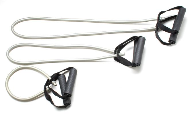 CanDo Tubing with Handles Exerciser - 3-piece full body set (18", 36", 48"), Silver, xx-heavy: