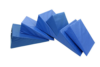 Skillbuilders wedges are made of molded foam coated with a tough integral washable coating. Heavy duty positioning and vestibular wedges are ideal for institutional use in physical therapy departments, home use, special education programs, pre-school programs, physical education classes and the gym. They can be used under the back, arm, or leg of a patient for comfortable and functional positioning. They can be used to provide the necessary leverage to promote an exercise regime.