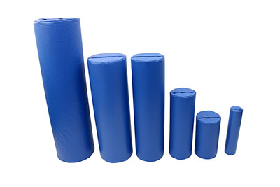 Positioning and vestibular rolls are covered with heavy-duty vinyl-coated nylon, filled with high compression urethane foam. Inexpensive rolls are ideal for institutional use in physical therapy departments, home use, special education programs, pre-school programs, physical education classes and the gym. Rolls are available in various sizes, firmness levels and colors.