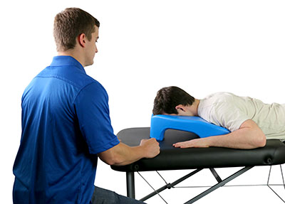 Pron Pillo provides comfort when patient is lying in prone position. Elevated base and nose cutout allow patient to breathe freely.